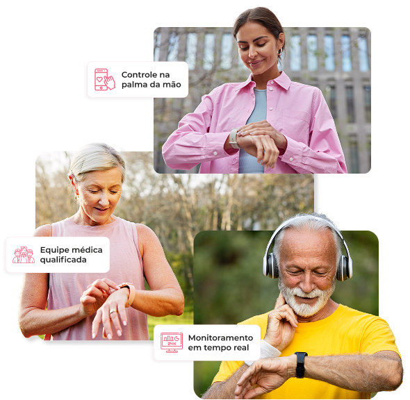 Viva com mais tranquilidade sabendo que sua mãe ou seu pai é monitorado por especialistas 24h.